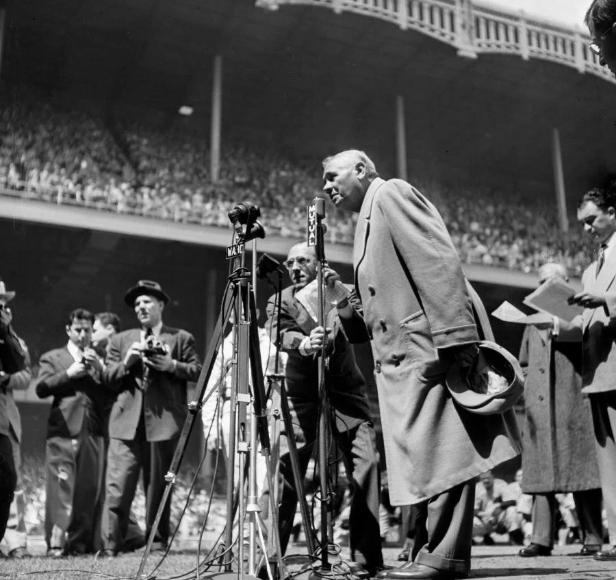 Managers Connie Mack and Les Bell before 1940 exhibition game.