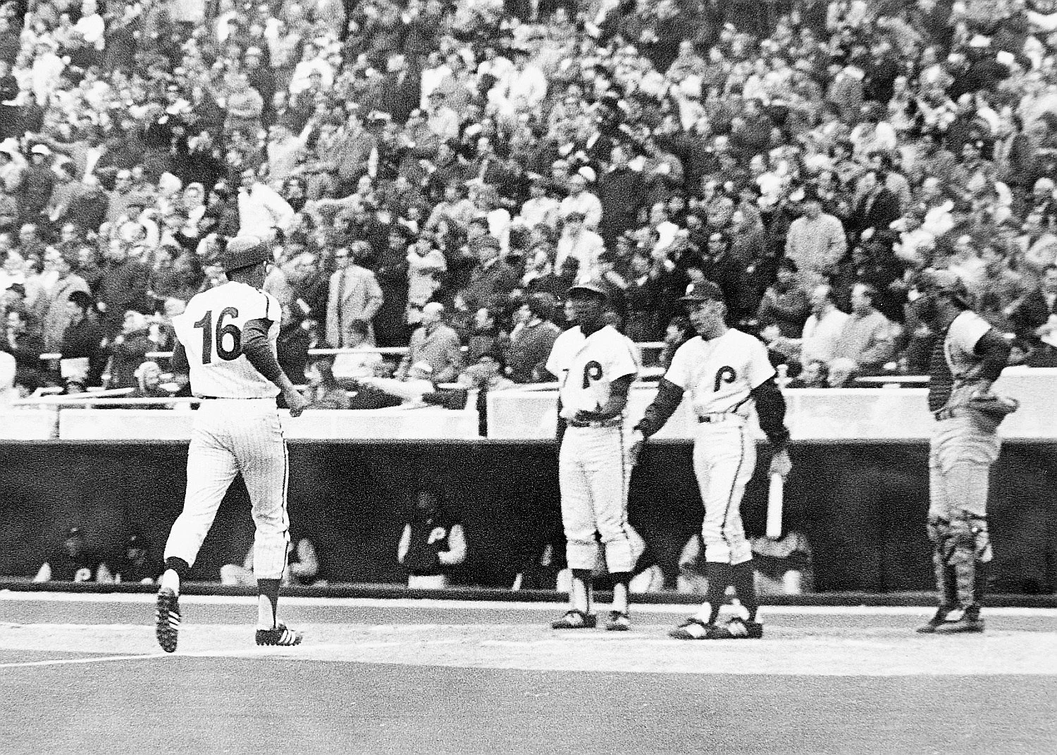 Don Money (16) approaches the plate after hitting the first home run