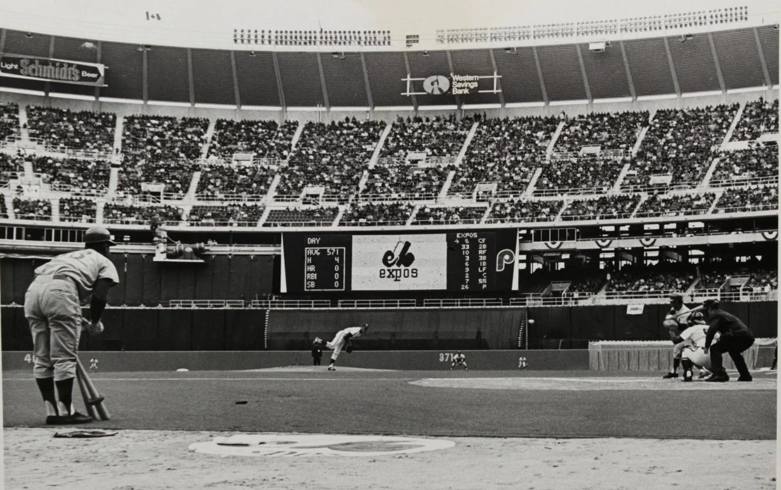 Historians note that Phillies leadoff batter Larry Bowa records the new stadium’s first hit – a first-inning single to right field off Expos starter Bill Stoneman – and Don Money picks up the first home run, a solo drive to left field off Stoneman that leads off the bottom of the sixth.