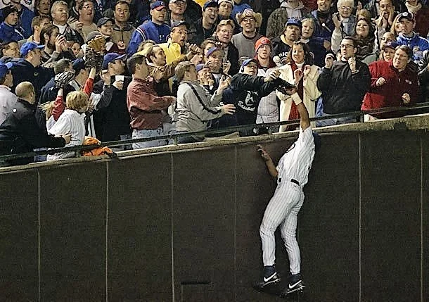 “I jumped perfectly,” Alou says. “I’m almost 100 percent that I had a clean shot to catch the ball. All of a sudden, there’s a hand on my glove.”