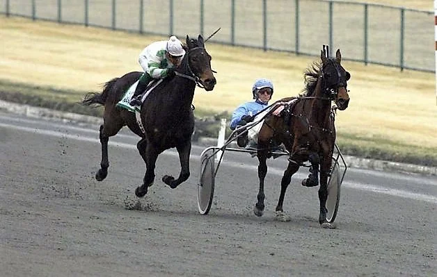Zippy Chippy finally wins a month later, although the victory (pictured here) officially does not count as he beats a trotter named Paddy's Lady on March 17 in Freehold, N.J.